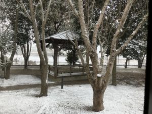 皆さん、景色を眺めながら「わあー雪が降ってるね。綺麗かね~。冷たいね~。」
