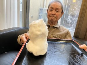 寒かったですが、雪が少し積り皆さんとちょっとだけ雪を眺めて、雪うさぎ🐇を作りました。(^○^)