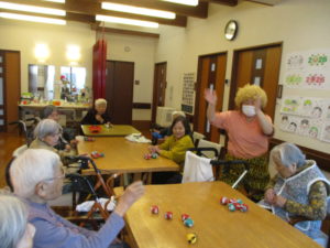 豆の替わりに、新聞紙を丸めたボールを鬼に目掛けて投げていただきました。