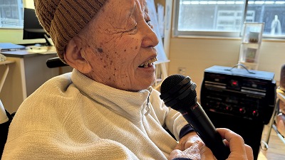 歌がお好きな利用者様にはマイクを使ったカラオケも行なっています!思い出の曲を思い出しながら、楽しく実施しています🎵