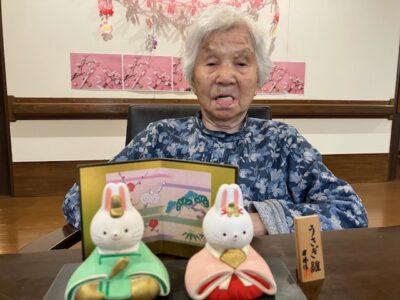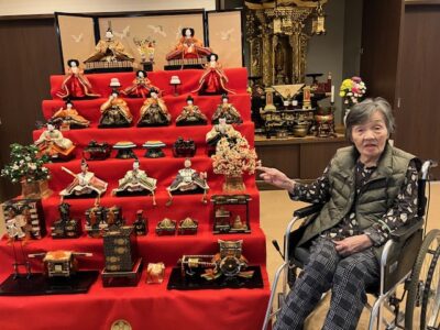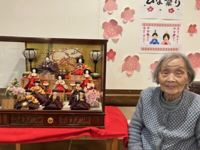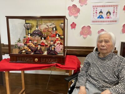 只今ショートステイには、ひな人形が飾ってあります。