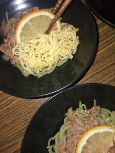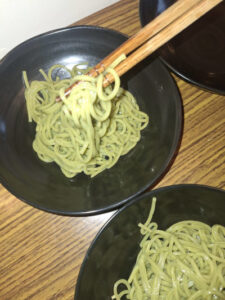 先ず、茶そばは、茹でて、冷水で締めてお皿に・・