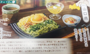 山口県のご当地グルメで、「瓦そば風茶そば」と「けんちょう」でした。