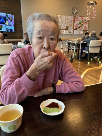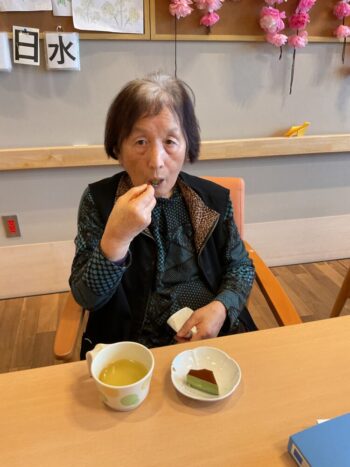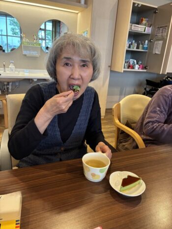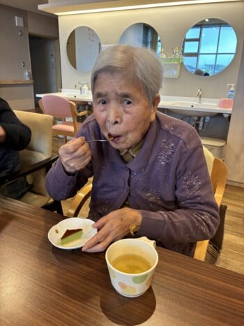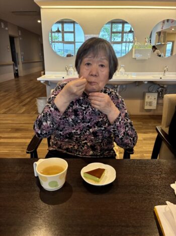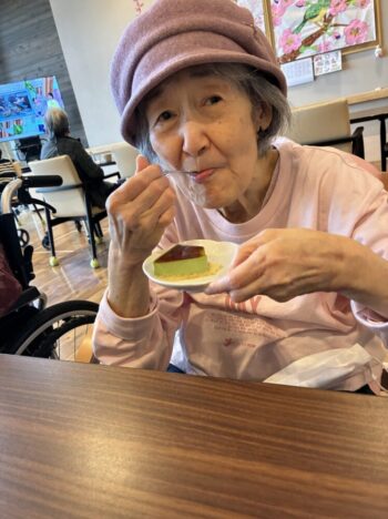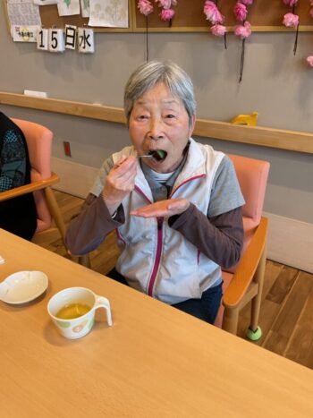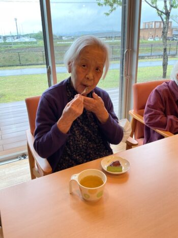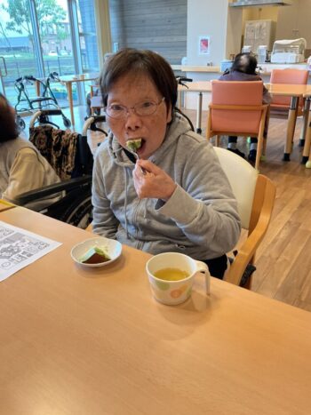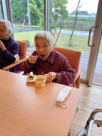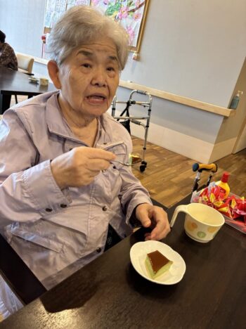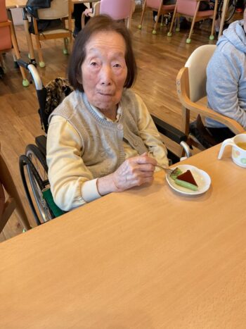 入所者様もお好きなようで、配り終えて写真を撮ろうとしたら、