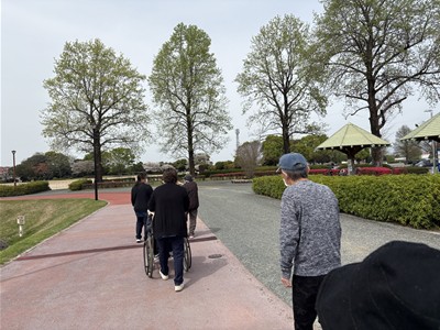 車いすを押して歩いてもらったりして目的地まで歩いて行きました。
