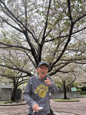 そして桜の木の下に到着すると「わぁ~!きれいかね!」と歓声が。