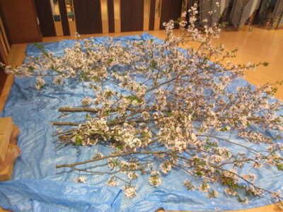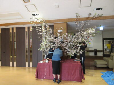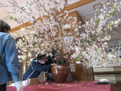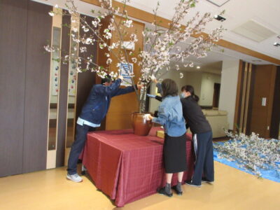 室内でも春を感じていただこうと、さくら花見会を企画し、開花宣言を今か今かと待ちわびていましたが、