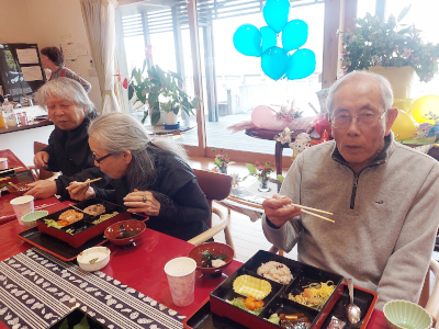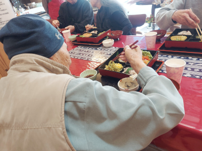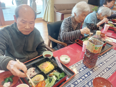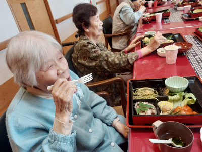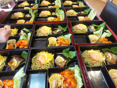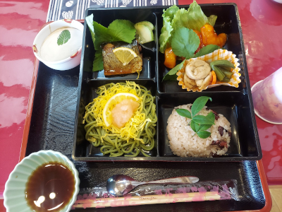 茶そば。赤飯・デザートはコーヒゼリーです。